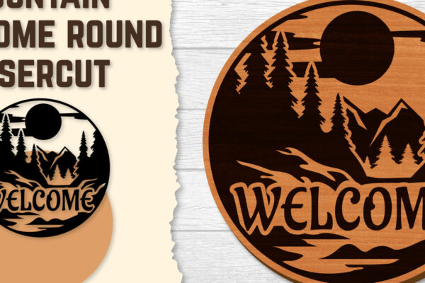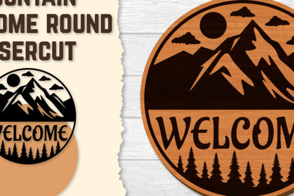 Intra απο ξύλο plywood 3mm-4mm πάχος – Sunset Mountain Welcome Sign Round Laser Δίασταση 40×30 cm INTRAFABR-118569041