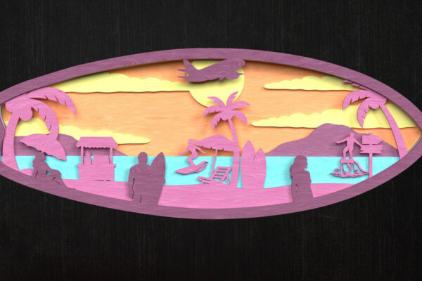 Intra απο ξύλο plywood 3mm-4mm πάχος – Surfboard Beach Scene Layered Δίασταση 20×20 cm INTRAFABR-120349704