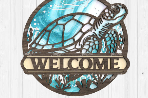 Intra απο ξύλο plywood 3mm-4mm πάχος – SVG καλωσορίσματος θαλάσσιας χελώνας Δίασταση 20×20 cm INTRAFABR-123114525