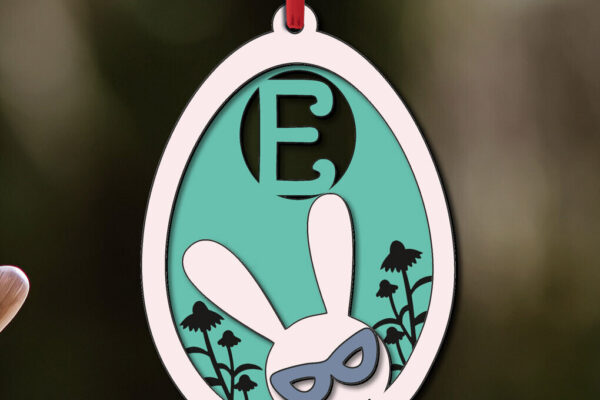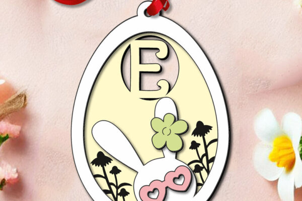 Intra απο ξύλο plywood 3mm-4mm πάχος – SVG Πασχαλινό γράμμα E Ετικέτα καλαθιού με αυγά λαγουδάκι Δίασταση 20×20 cm INTRAFABR-118689369