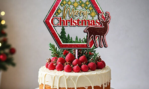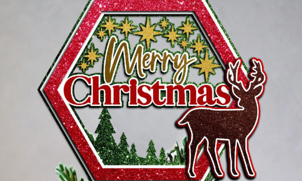 Intra απο ξύλο plywood 3mm-4mm πάχος – SVG Cake Topper Καλά Χριστούγεννα Τάρανδοι Δίασταση 20×20 cm INTRAFABR-112668337