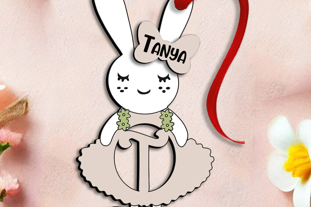 Intra απο ξύλο plywood 3mm-4mm πάχος – SVG Letter T Πασχαλινό φόρεμα λαγουδάκι Laser Δίασταση 20×20 cm INTRAFABR-114576109