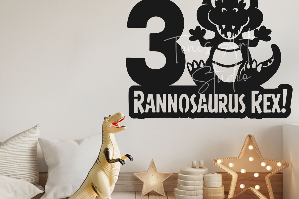 Intra απο ξύλο plywood 3mm-4mm πάχος – T-Rex Dinosaur Birthday Cake Topper Δίασταση 20×20 cm INTRAFABR-117428073