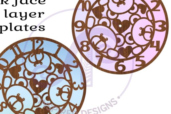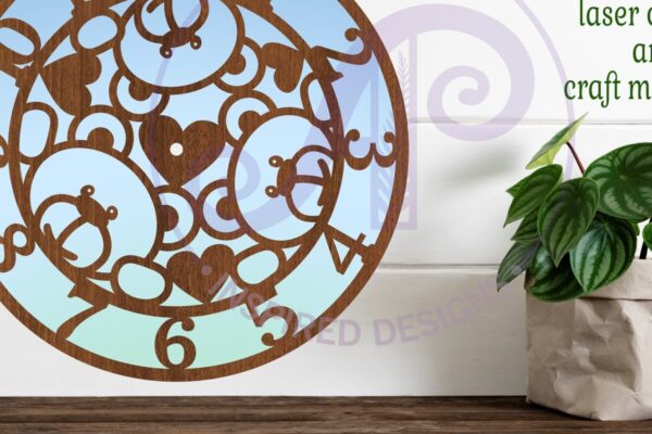 Intra απο ξύλο plywood 3mm-4mm πάχος – Teddy Bear Ρολόι τοίχου με λέιζερ FilesSVG Δίασταση 40×30 cm INTRAFABR-86444661