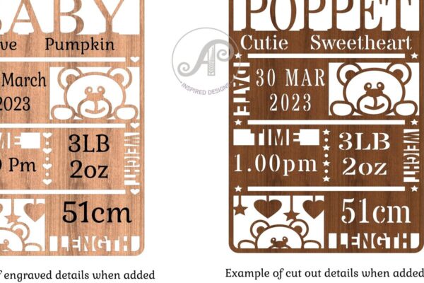 Intra απο ξύλο plywood 3mm-4mm πάχος – Teddy Bear Baby Stats, Πλακέτα γέννησης Δίασταση 20×20 cm INTRAFABR-67520664