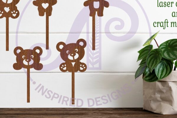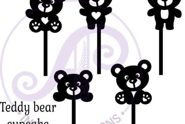 Intra απο ξύλο plywood 3mm-4mm πάχος – Teddy Bear Cupcake Toppers 5 σχεδίων Δίασταση 20×20 cm INTRAFABR-86444091
