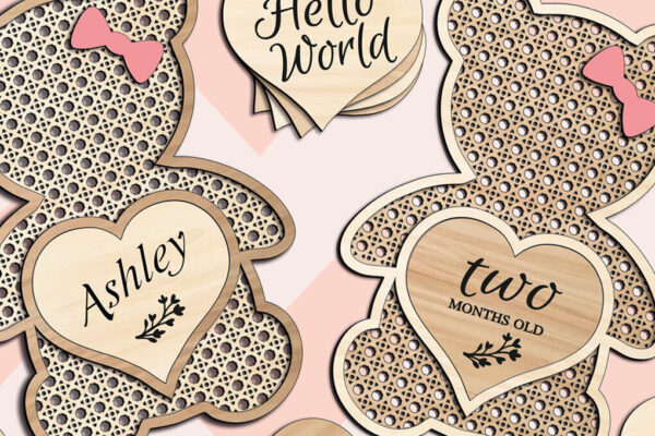 Intra απο ξύλο plywood 3mm-4mm πάχος – Teddy Bear Rattan Baby Milestone Heart Δίασταση 20×20 cm INTRAFABR-103440768
