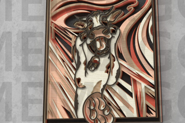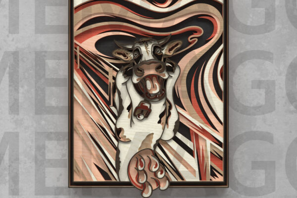 Intra απο ξύλο plywood 3mm-4mm πάχος – The Moo Scream, Cow Parody Art Δίασταση 20×20 cm INTRAFABR-121409301