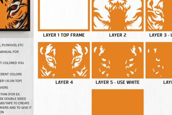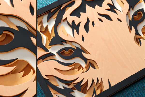 Intra απο ξύλο plywood 3mm-4mm πάχος – Tiger 3D Layered | Αρχείο κοπής με λέιζερ ζώων Δίασταση 20×20 cm INTRAFABR-24585992