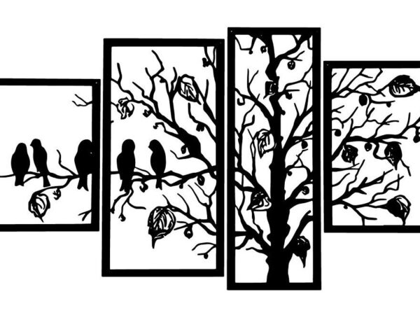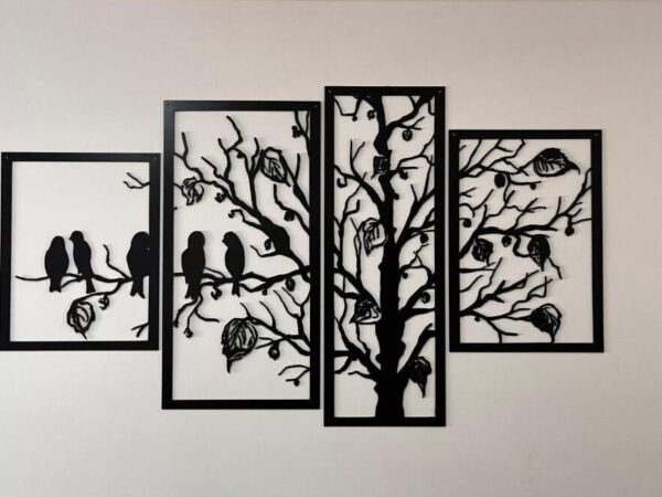 Intra απο ξύλο plywood 3mm-4mm πάχος – Tree and Birds Art Decor τοίχου 4 τεμαχίων 20×25 cm INTRAVECTRY-MY543414
