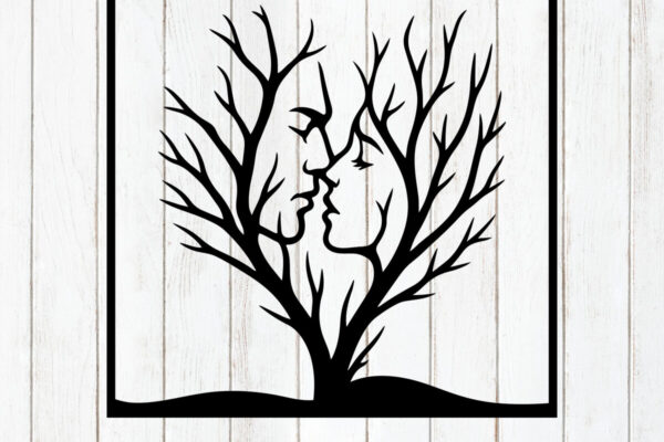 Intra απο ξύλο plywood 3mm-4mm πάχος – Tree Kiss Couple Silhouette Art Δίασταση 20×20 cm INTRAFABR-124400139