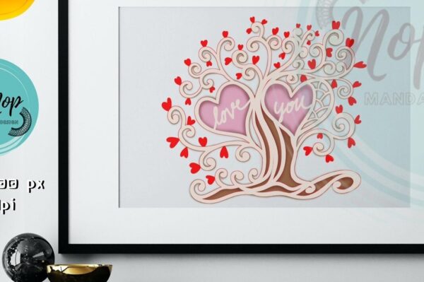 Intra απο ξύλο plywood 3mm-4mm πάχος – Tree of Love 3D Valentine V.1 Δίασταση 20×20 cm INTRAFABR-55676107