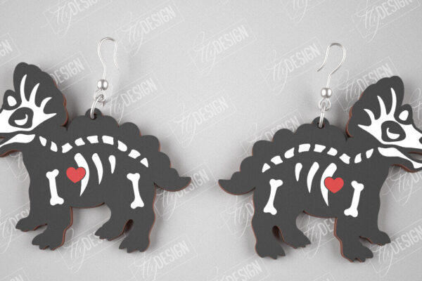 Intra απο ξύλο plywood 3mm-4mm πάχος – Triceratops Skeleton Earrings | Κοσμήματα Δίασταση 5×5 cm INTRAFABR-105271529