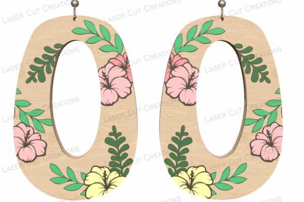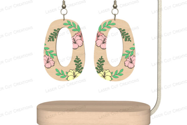 Intra απο ξύλο plywood 3mm-4mm πάχος – Tropical Floral Οβάλ Σκουλαρίκια Δίασταση 5×5 cm INTRAFABR-124514818