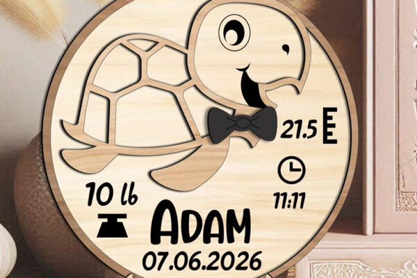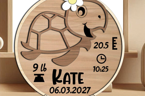 Intra απο ξύλο plywood 3mm-4mm πάχος – Turtle Baby Ανακοινώσεις Στρογγυλός πίνακας Δίασταση 45×45 cm INTRAFABR-117123746