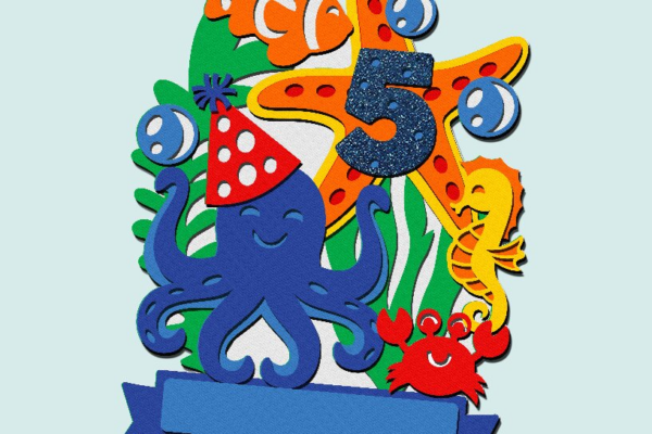 Intra απο ξύλο plywood 3mm-4mm πάχος – Under the Sea Octopus Cake Topper 3D Δίασταση 20×20 cm INTRAFABR-100319701