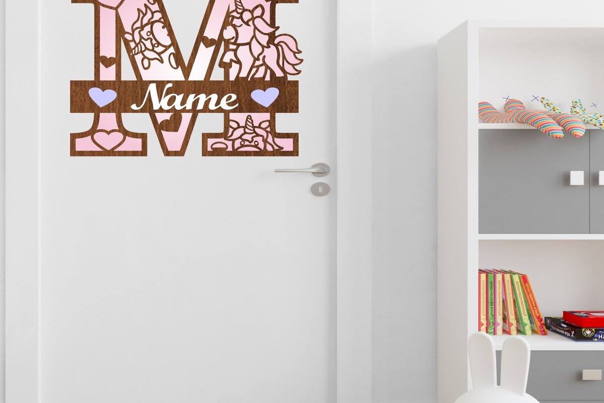 Intra απο ξύλο plywood 3mm-4mm πάχος – Unicorn Monogram Letter M Δίασταση 20×20 cm INTRAFABR-70818700