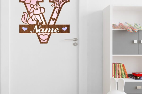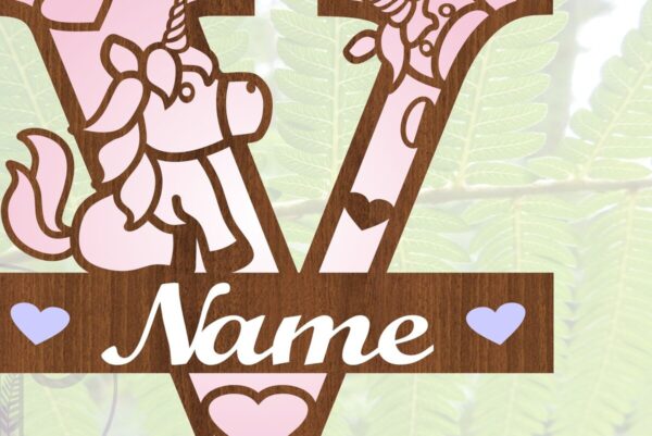 Intra απο ξύλο plywood 3mm-4mm πάχος – Unicorn Monogram Letter V Δίασταση 20×20 cm INTRAFABR-70818900