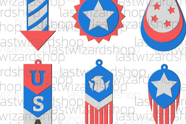 Intra απο ξύλο plywood 3mm-4mm πάχος – USA Flag Earrings, 4 Ιουλίου Δίασταση 5×5 cm INTRAFABR-25318501