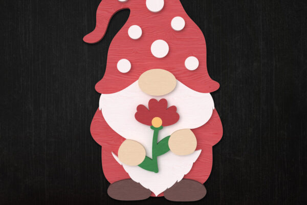 Intra απο ξύλο plywood 3mm-4mm πάχος – Valentine Gnome με λουλούδι Δίασταση 20×20 cm INTRAFABR-111422458