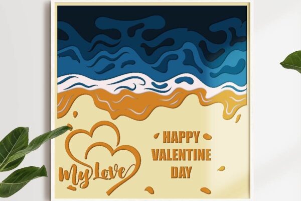 Intra απο ξύλο plywood 3mm-4mm πάχος – Valentine – Heart on the Beach Δίασταση 20×20 cm INTRAFABR-53549592