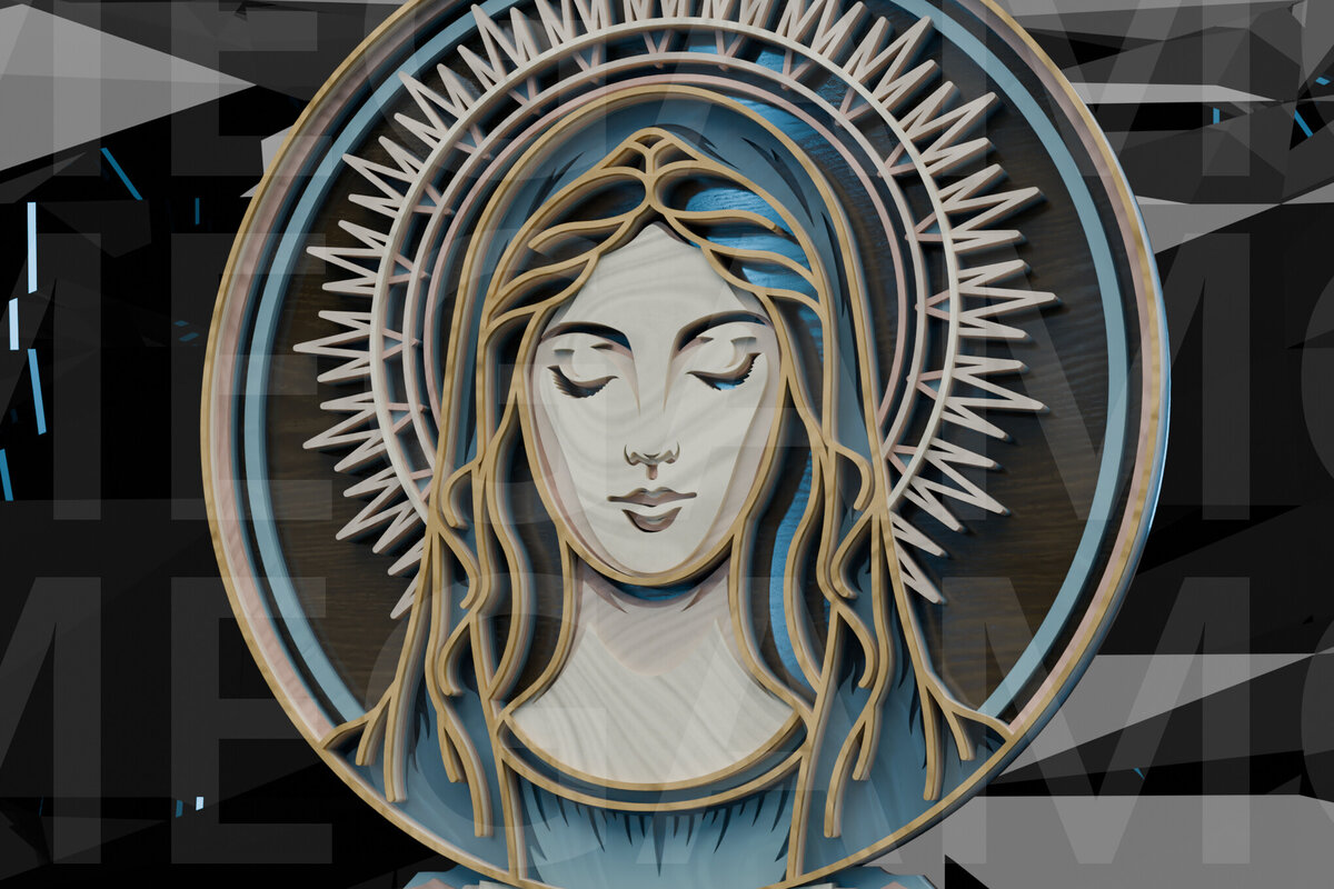 Intra απο ξύλο plywood 3mm-4mm πάχος – Virgin Mary Portrait Layered Δίασταση 20×20 cm INTRAFABR-123433182