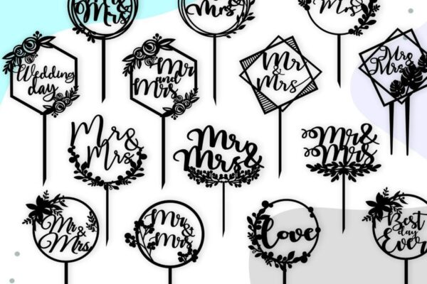 Intra απο ξύλο plywood 3mm-4mm πάχος – Wedding Cake Topper, Mr and Mrs Δίασταση 20×20 cm INTRAFABR-40846467