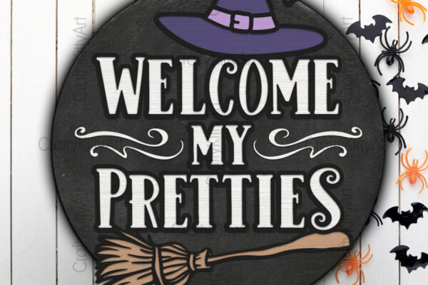 Intra απο ξύλο plywood 3mm-4mm πάχος – Welcome My Pretties Halloween Door Sign Δίασταση 40×30 cm INTRAFABR-104607753