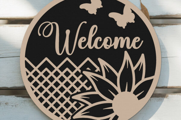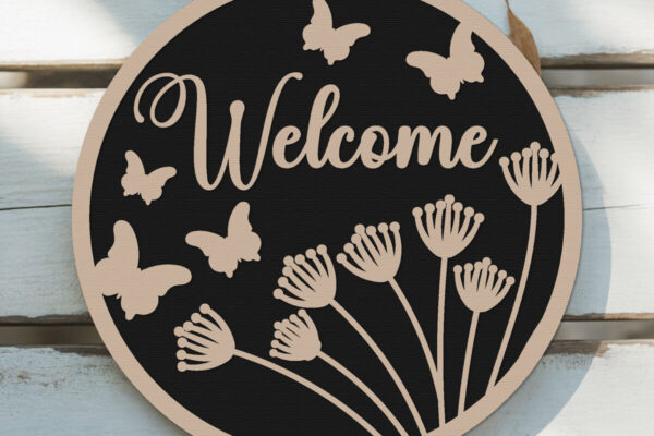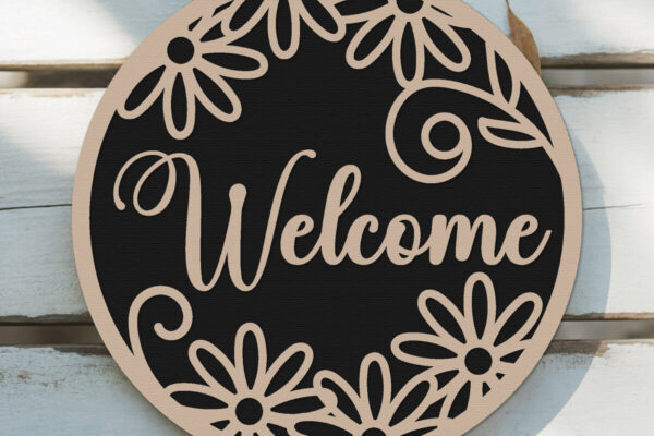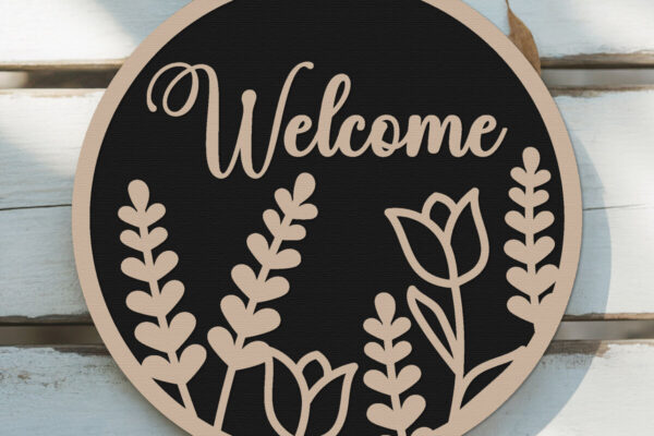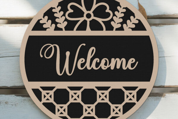 Intra απο ξύλο plywood 3mm-4mm πάχος – Welcome Round Sign Lasercut – Floral Δίασταση 40×30 cm INTRAFABR-125166422