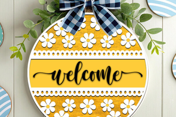 Intra απο ξύλο plywood 3mm-4mm πάχος – Welcome Spring Door, Ξύλινη στρογγυλή πινακίδα Δίασταση 20×20 cm INTRAFABR-117547563