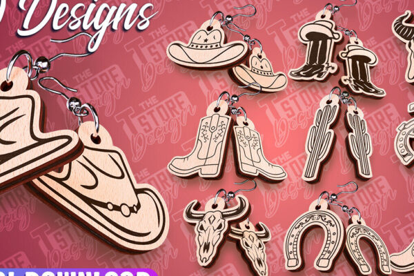 Intra απο ξύλο plywood 3mm-4mm πάχος – Western σκουλαρίκια | Αξεσουάρ Δίασταση 5×5 cm INTRAFABR-93012767