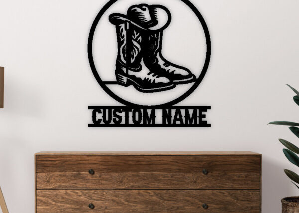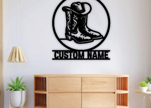 Intra απο ξύλο plywood 3mm-4mm πάχος – Western Cowboy & Cowgirl Boots Metal Art Δίασταση 20×20 cm INTRAFABR-97684357