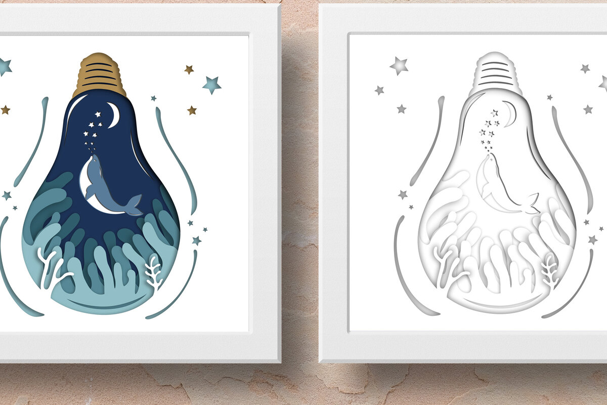 Intra απο ξύλο plywood 3mm-4mm πάχος – Whale 3D Shadow Box – Χαρτόκοπο με στρώσεις Δίασταση 20×20 cm INTRAFABR-21678649
