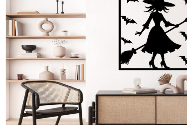 Intra απο ξύλο plywood 3mm-4mm πάχος – Witch on Broomstick Metal Wall Art Laser Δίασταση 40×30 cm INTRAFABR-102823442