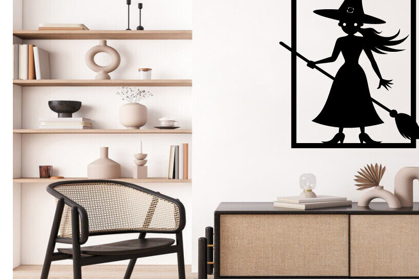 Intra απο ξύλο plywood 3mm-4mm πάχος – Witch on Broomstick Metal Wall Art Laser Δίασταση 40×30 cm INTRAFABR-102823533