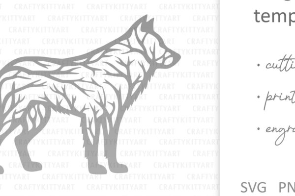 Intra απο ξύλο plywood 3mm-4mm πάχος – Wolf Forest Tree Τέχνη τοίχου με Δίασταση 40×30 cm INTRAFABR-110782750