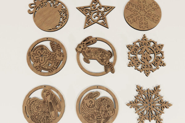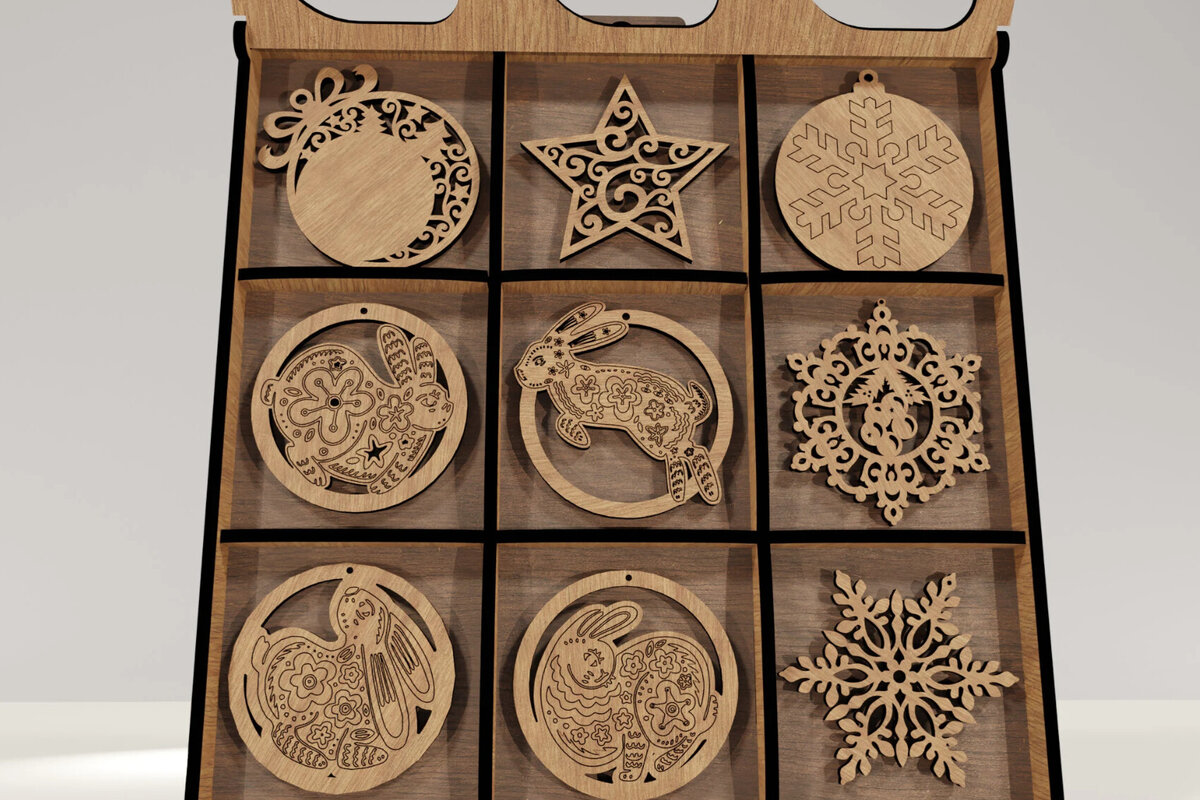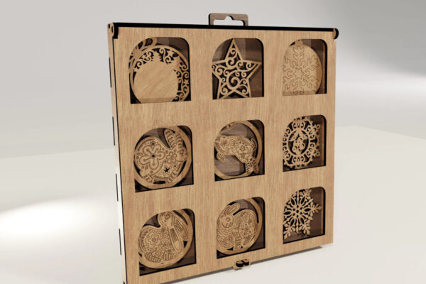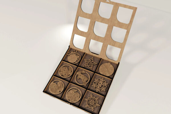 Intra απο ξύλο plywood 3mm-4mm πάχος – X-Mas 9 στολίδια με κουτί παρουσίασης Δίασταση 20×20 cm INTRAFABR-104664319