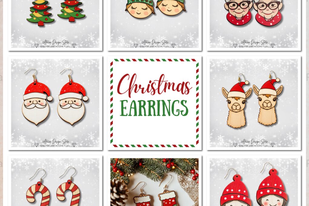 Intra απο ξύλο plywood 3mm-4mm πάχος – Xmas Earring Laser Files009 Δίασταση 5×5 cm INTRAFABR-117526078