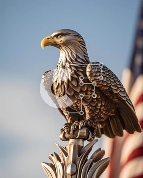 Intra Συλλεκτικό Ξύλινο Παζλ Plywood 4mm – Άγαλμα αετού με αμερικανική σημαία Σε Ξύλινο Κουτί – Διαστάσεις Puzzle: 10×10 cm – 25 κομμάτια