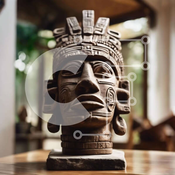 Intra Συλλεκτικό Ξύλινο Παζλ Plywood 4mm – Άγαλμα ενός ινδικού κεφαλιού σε ένα ξύλινο τραπέζι Σε Ξύλινο Κουτί – Διαστάσεις Puzzle: 10×10 cm – 25 κομμάτια
