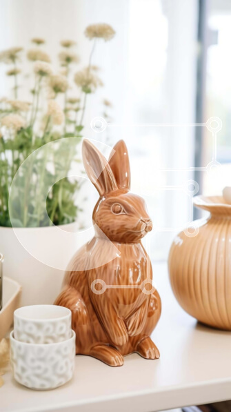 Intra Συλλεκτικό Ξύλινο Παζλ Plywood 4mm – Άγαλμα καφέ κουνελιού σε διακοσμημένο τραπέζι Σε Ξύλινο Κουτί – Διαστάσεις Puzzle: 10×10 cm – 25 κομμάτια