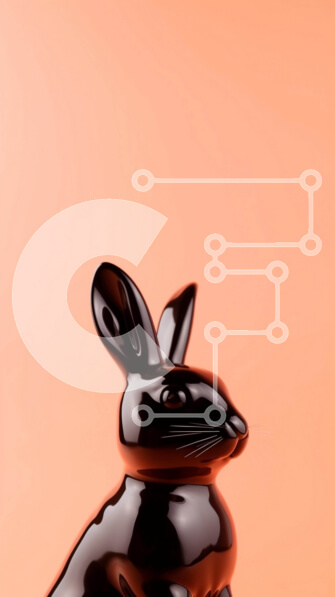 Intra Συλλεκτικό Ξύλινο Παζλ Plywood 4mm – Άγαλμα μαύρο λαγουδάκι σε πορτοκαλί φόντο Σε Ξύλινο Κουτί – Διαστάσεις: 10×10 cm – 25 κομμάτια