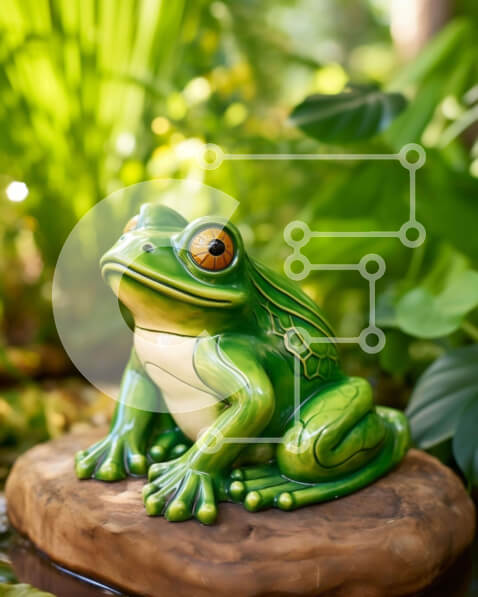 Intra Συλλεκτικό Ξύλινο Παζλ Plywood 4mm – Άγαλμα πράσινου βατράχου σε φυσικό περιβάλλον Σε Ξύλινο Κουτί – Διαστάσεις: 10×10 cm – 25 κομμάτια