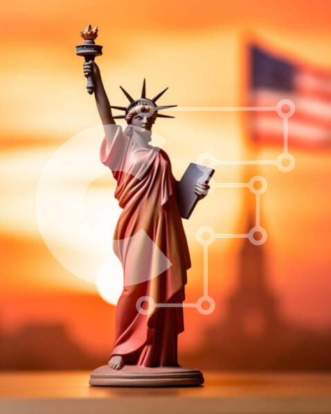 Intra Συλλεκτικό Ξύλινο Παζλ Plywood 4mm – Άγαλμα της ελευθερίας με την αμερικανική σημαία στο ηλιοβασίλεμα Σε Ξύλινο Κουτί – Διαστάσεις Puzzle: 10×10 cm – 25 κομμάτια