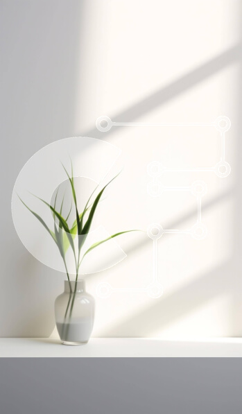 Intra Συλλεκτικό Ξύλινο Παζλ Plywood 4mm – Άδειο βάζο με πράσινο φυτό σε λευκό τοίχο στο φως του ήλιου Σε Ξύλινο Κουτί – Διαστάσεις Puzzle: 10×10 cm – 25 κομμάτια