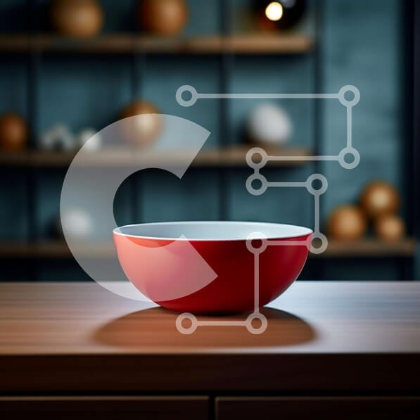 Intra Συλλεκτικό Ξύλινο Παζλ Plywood 4mm – Άδειο κόκκινο μπολ σε ξύλινο τραπέζι με φόντο ράφι Σε Ξύλινο Κουτί – Διαστάσεις Puzzle: 10×10 cm – 25 κομμάτια