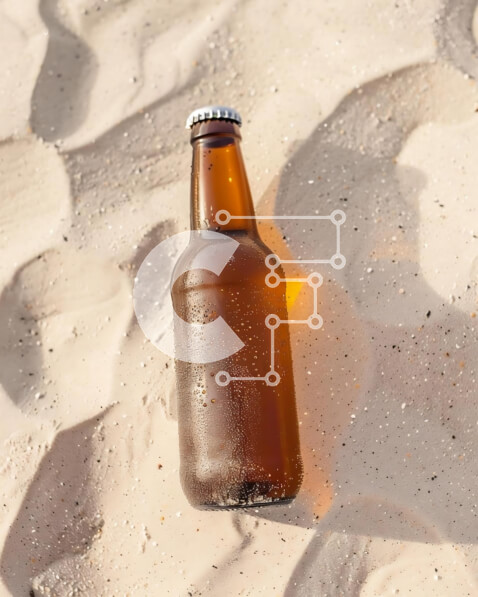 Intra Συλλεκτικό Ξύλινο Παζλ Plywood 4mm – Άδειο μπουκάλι καφέ μπύρας στην αμμώδη παραλία Σε Ξύλινο Κουτί – Διαστάσεις: 10×10 cm – 25 κομμάτια