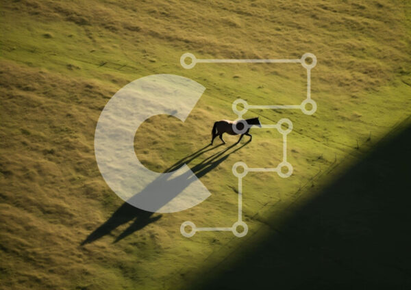 Intra Συλλεκτικό Ξύλινο Παζλ Plywood 4mm – Άλογο που περπατά στο χορταριασμένο χωράφι με τη σκιά Σε Ξύλινο Κουτί – Διαστάσεις: 10×10 cm – 25 κομμάτια
