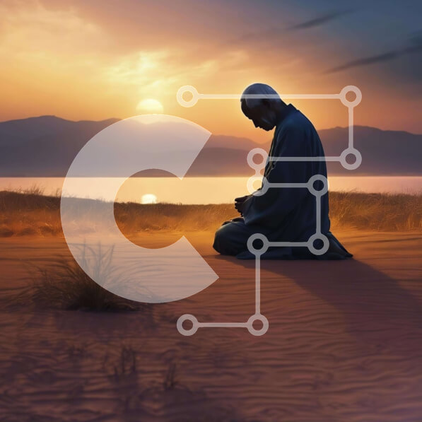 Intra Συλλεκτικό Ξύλινο Παζλ Plywood 4mm – Άνδρας γονατιστός στην άμμο στο ηλιοβασίλεμα κοντά σε υδάτινα σώματα Σε Ξύλινο Κουτί – Διαστάσεις: 10×10 cm – 25 κομμάτια
