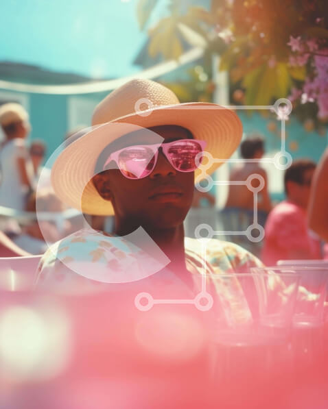 Intra Συλλεκτικό Ξύλινο Παζλ Plywood 4mm – Άνδρας με γυαλιά ηλίου που κάθεται σε υπαίθριο τραπέζι με ανθρώπους Σε Ξύλινο Κουτί – Διαστάσεις Puzzle: 10×10 cm – 25 κομμάτια